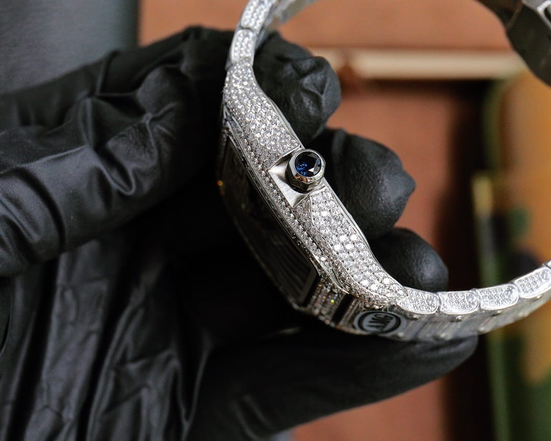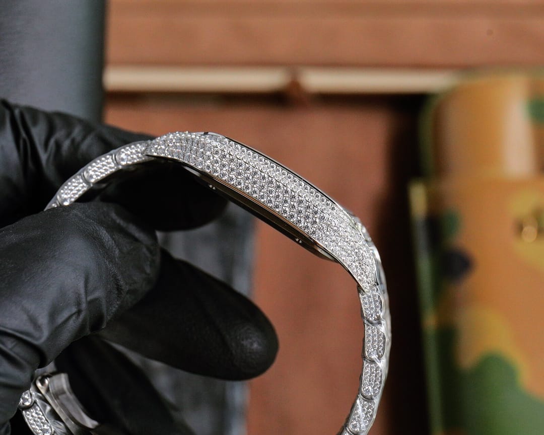 Cartier Santos Moissanite Watch 40mm Black Roman Dial