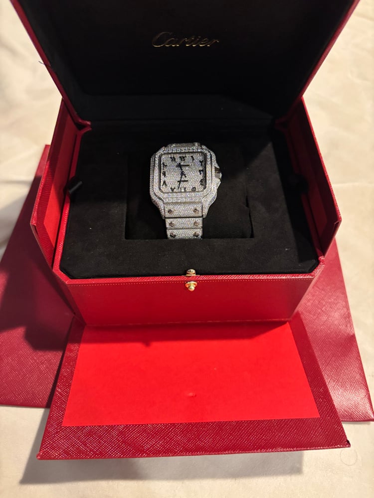 Cartier Santos Diamond Watch 40mm Black Roman Dial